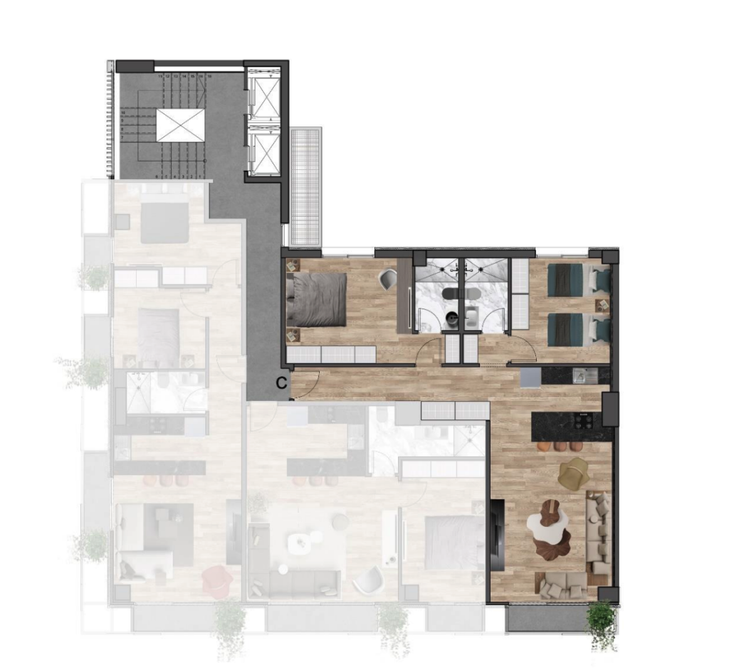 88 sqm two-bedroom apartment