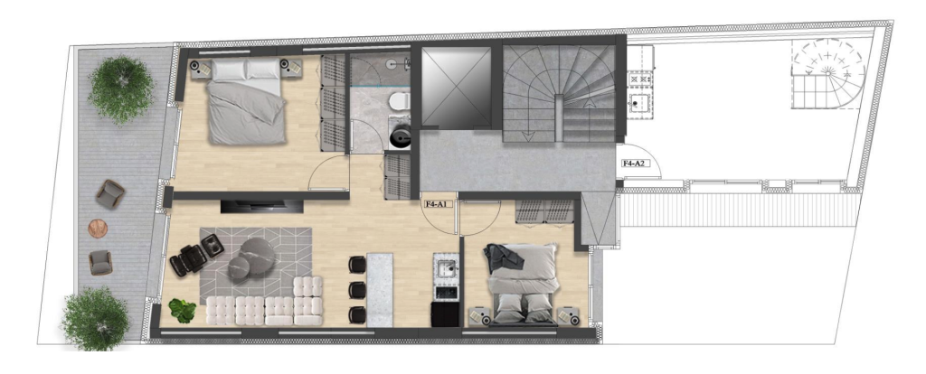 55 sqm two-bedroom apartment